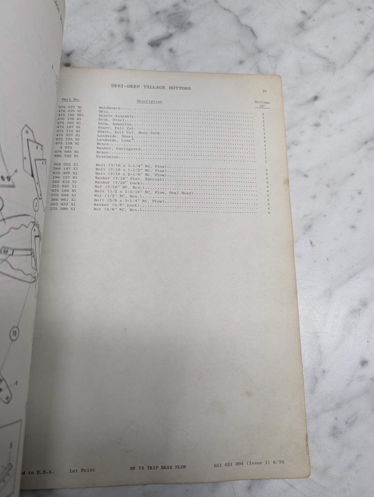 Massey Ferguson Mf 74 Trip Beam Plow Form No 651 021 M94 Parts Book Manual