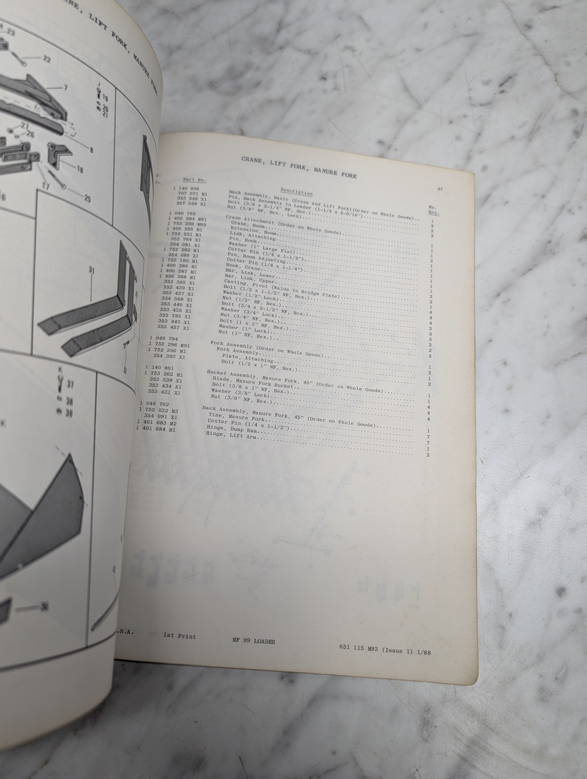 Massey Ferguson Mf 99 Loader Parts Book Manual List Catalog North American