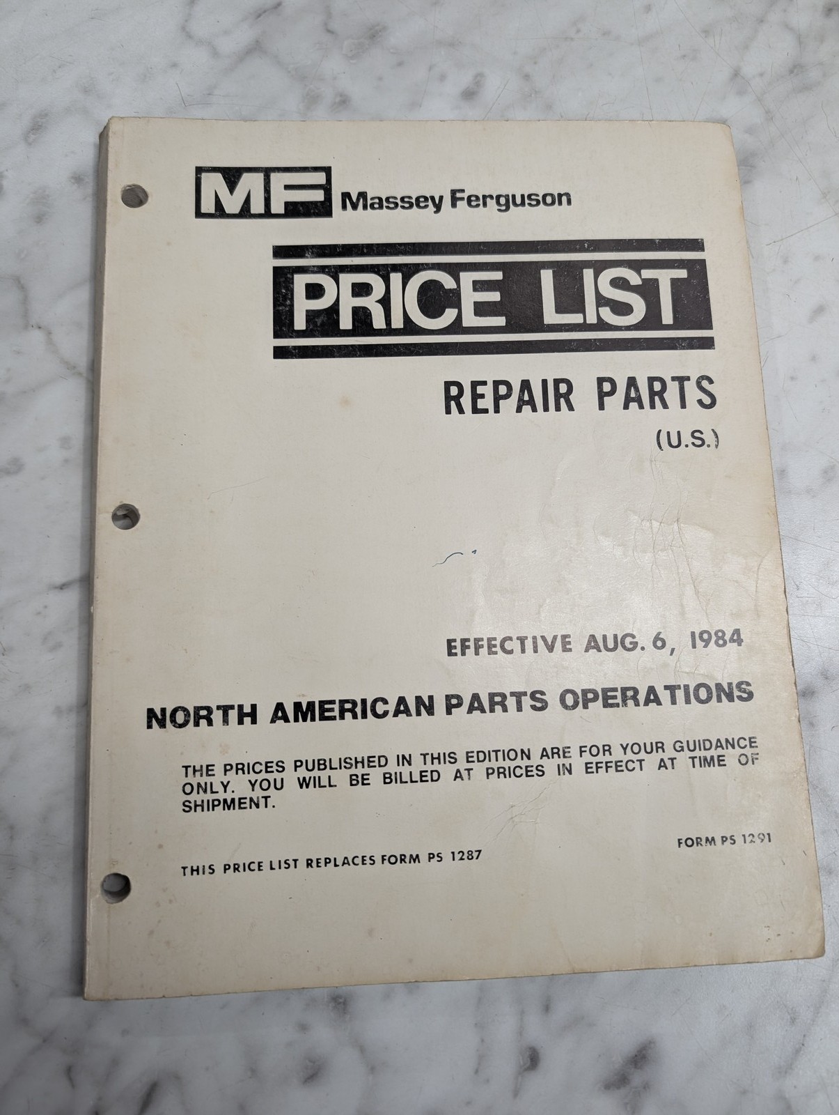 Massey Ferguson Mf Price List Repair Parts U S Form Ps 1291 Effective 1984