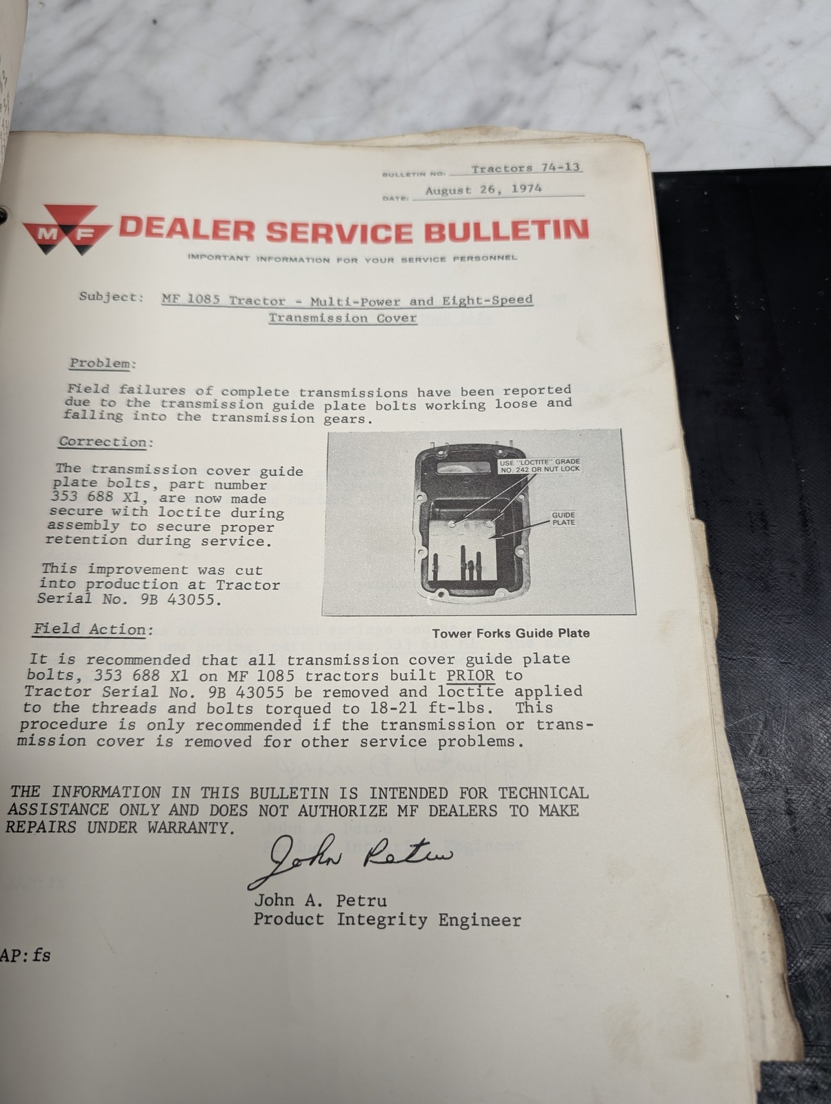 Massey-Ferguson Mf Service Bulletins Manual Repair Maintenance Shop 1970S