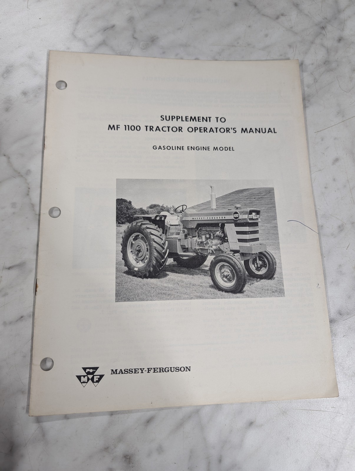 Massey Ferguson Operator’S Manual Gasoline Supplement Mf 1100 Tractors