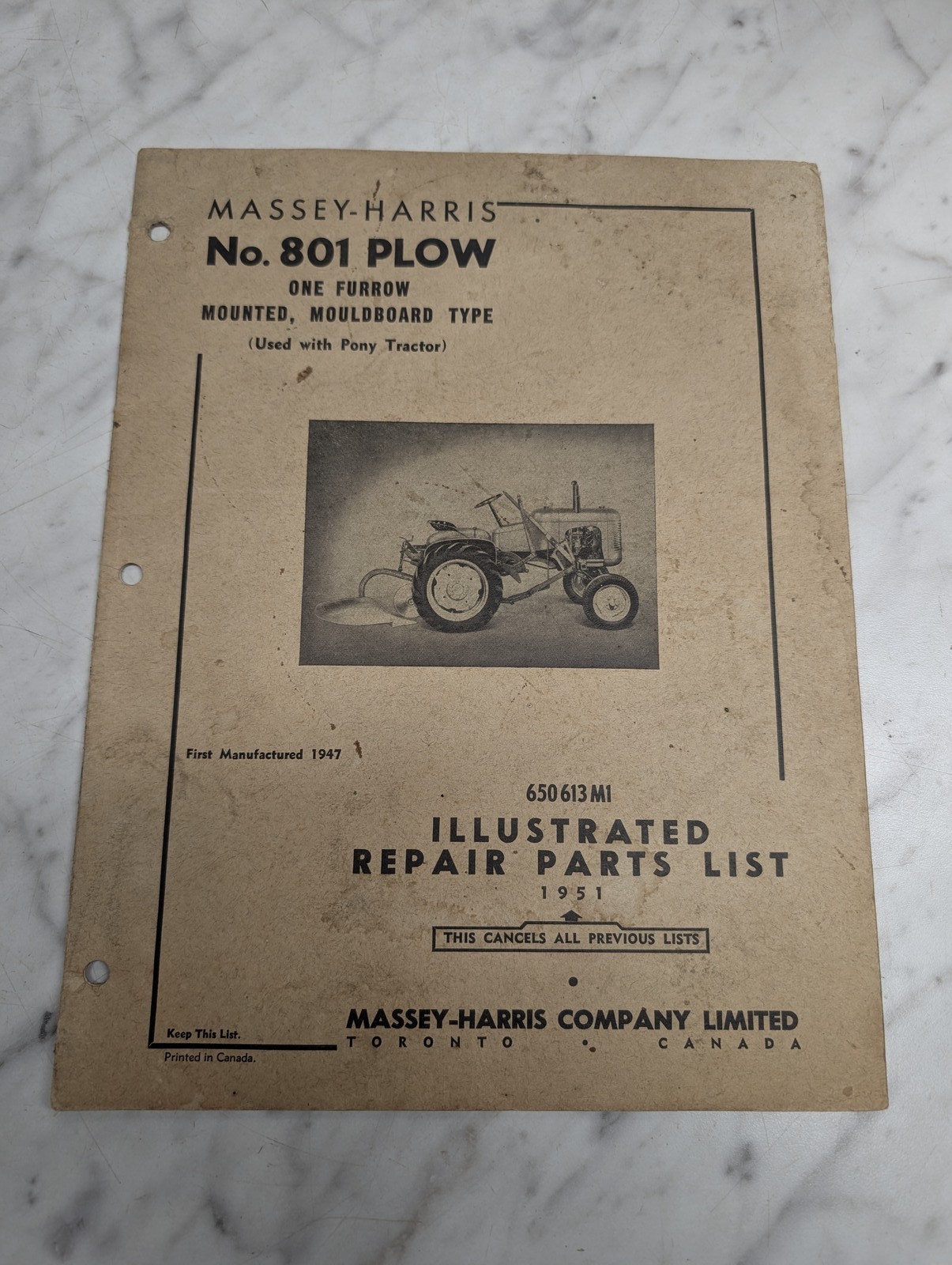 Massey Harris #801 Plow One Furrow Moldboard Type Illustrated Parts List Manual