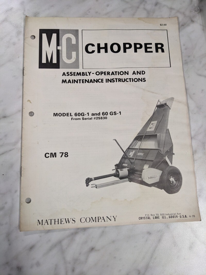 Mathews Company Mc Operator Service Manual Model 60G-1 60Gs-1 Cm78 1978 Chopper