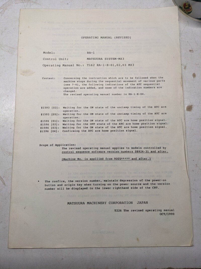 Matsuura Systems Mx3 Operating Service Manual Ra-1 1990 Stop Programming