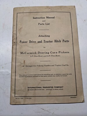 Mccormick Deering Attaching Tractor Hitch Drive Corn Pickers 1-P 2 1941 5209