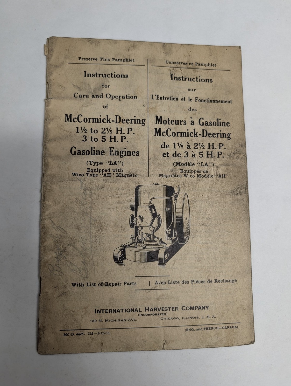 Mccormick Deering Gasoline Engines Type La Instruction Operation Manual Book