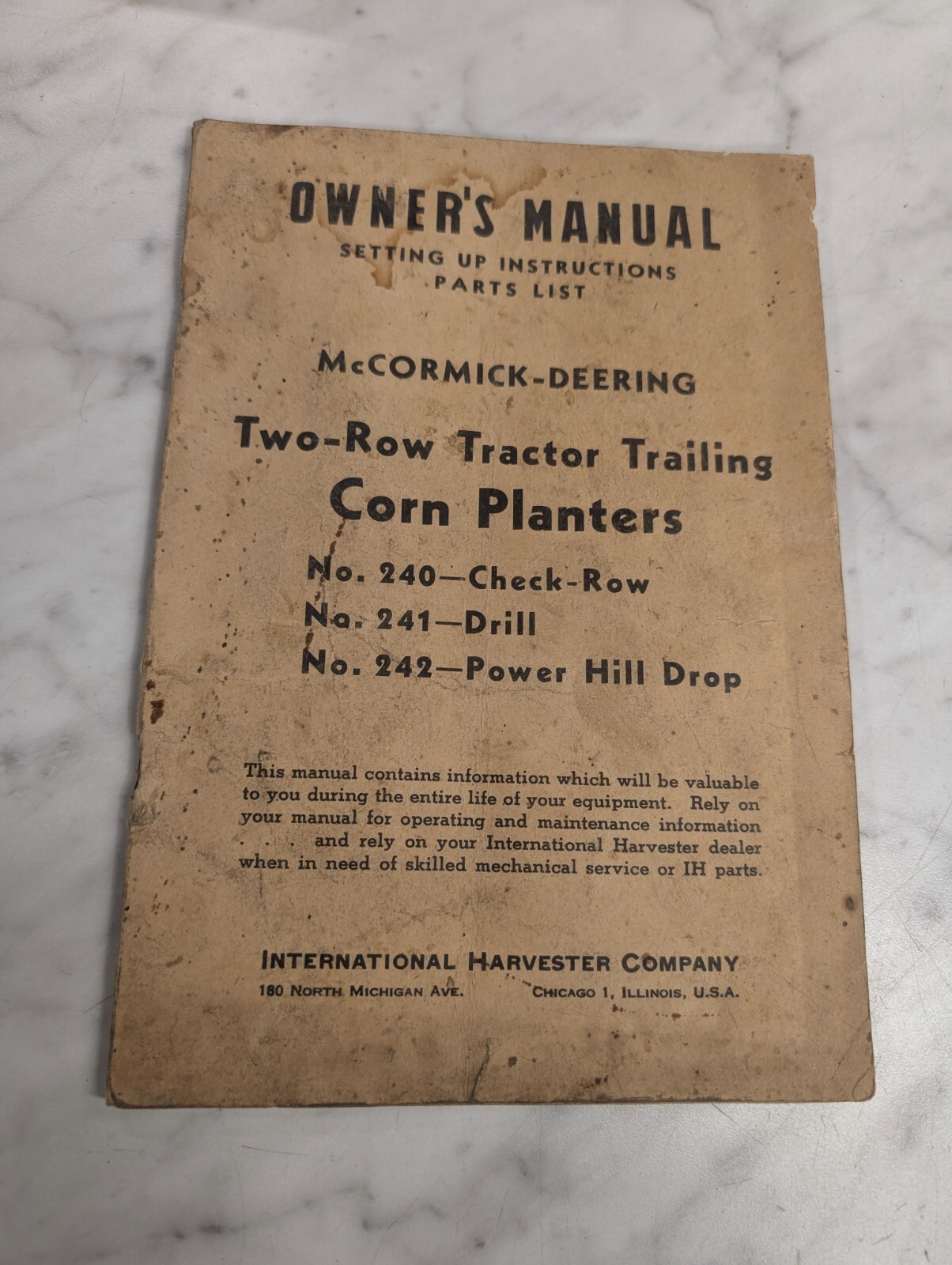 Mccormick Operator’S Owners Manual International Ih Corn Planters #240 241 242