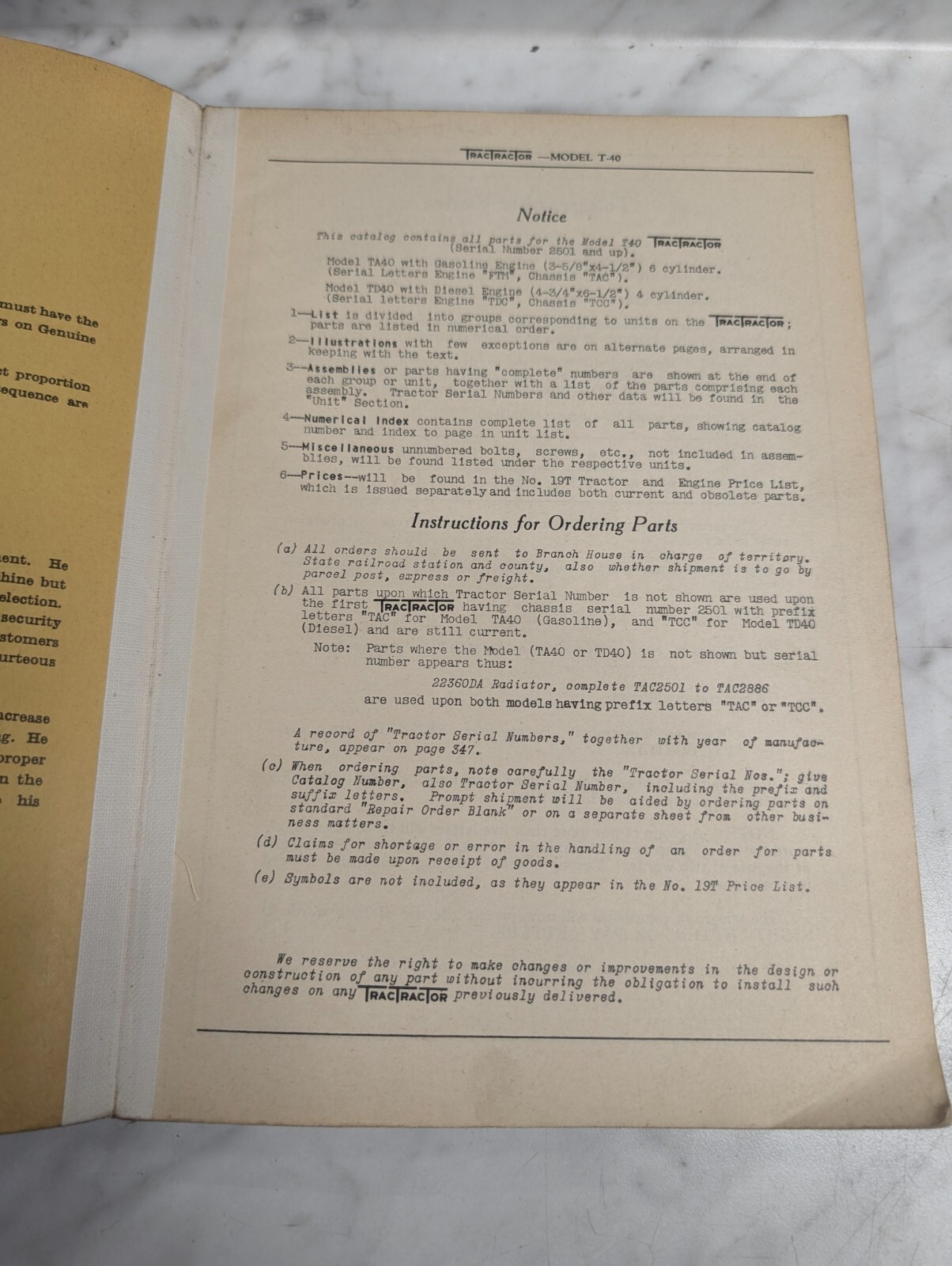 Mccormick Parts List Manual Catalog Model Ta-40 Diesel Tractractor 1935 Tc-12