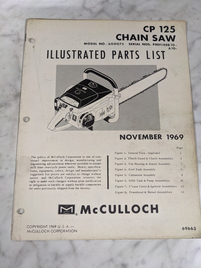 Mcculloch Chain Saw Illustrated Parts List Book Manual Catalog Cp 125 1969 69663