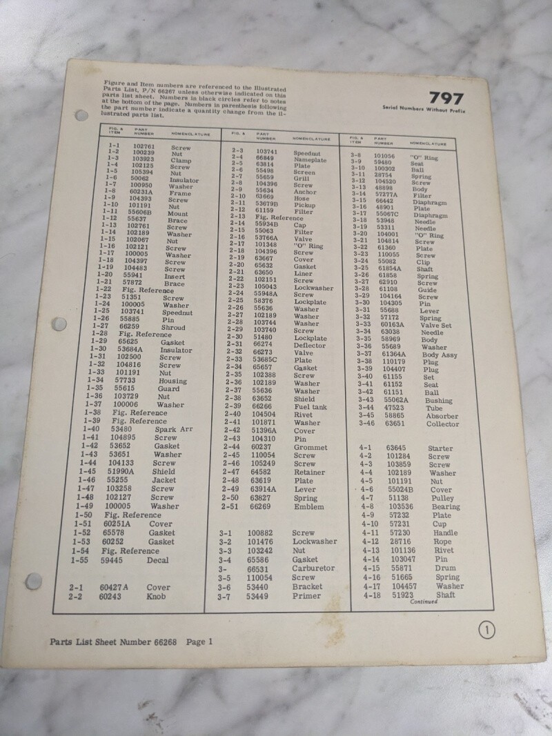 Mcculloch Chain Saw Part Number List Sheet 66268 797 Model