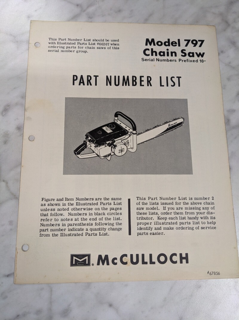 Mcculloch Chain Saw Parts Number List Book Manual Model 797 #67856