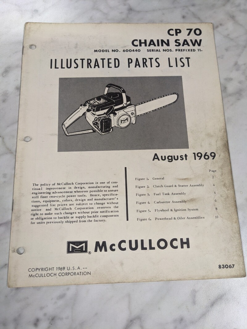 Mcculloch Chain Saws Illustrated Parts List Book Manual Catalog Cp 70 1969 83067
