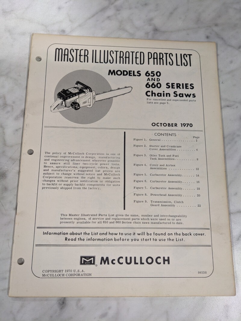 Mcculloch Chainsaw Part List Master Illustrated Manual 650 600 Series 1970 84538