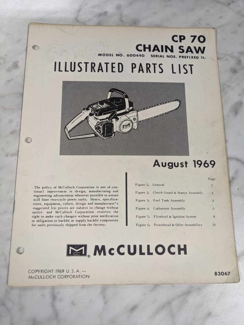 Mcculloch Chainsaws Illustrated Parts List Book Manual Catalog Cp 70 1969 83067