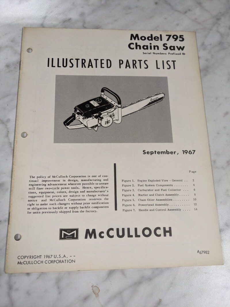 Mcculloch Parts List Book Illustrated Manual Chain Saw Model 795 67982 1967