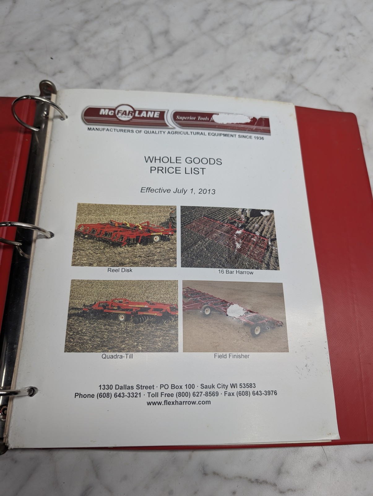 Mcfarlane Equipment Sales Literature Dealer Manual Parts Book