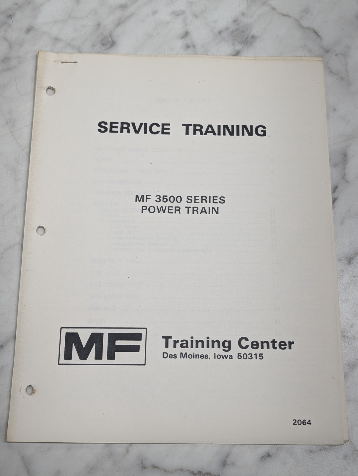 Mf 3500 Series Power Train Service Training Manual Repair Maintenance Shop