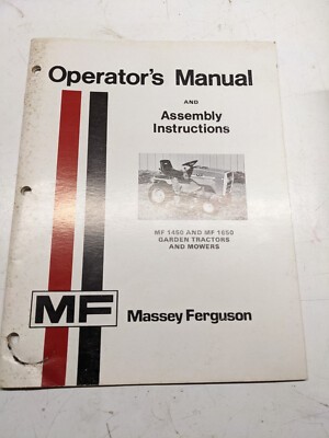 Mf Massey Ferguson Operators Manual & Assembly Garden Tractor Mower 1450 `650
