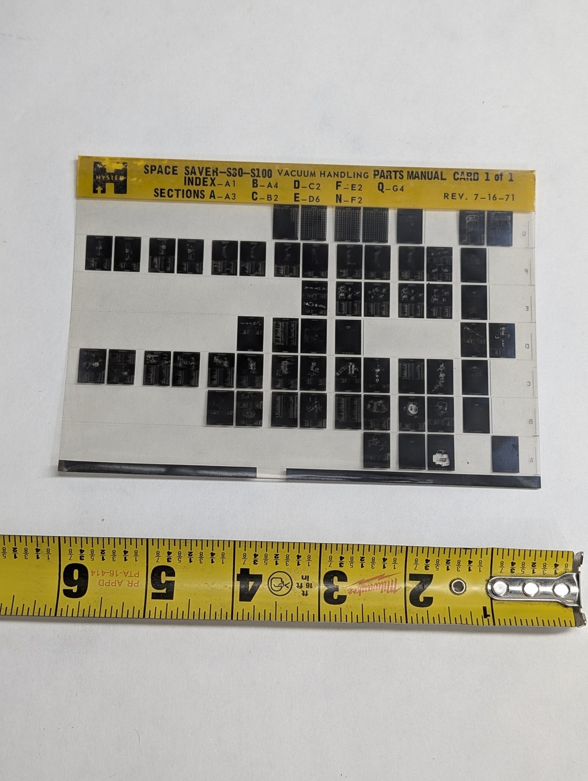 Microfiche Parts Manual List Hyster Space Saver S30-S100 Vacuum Handling