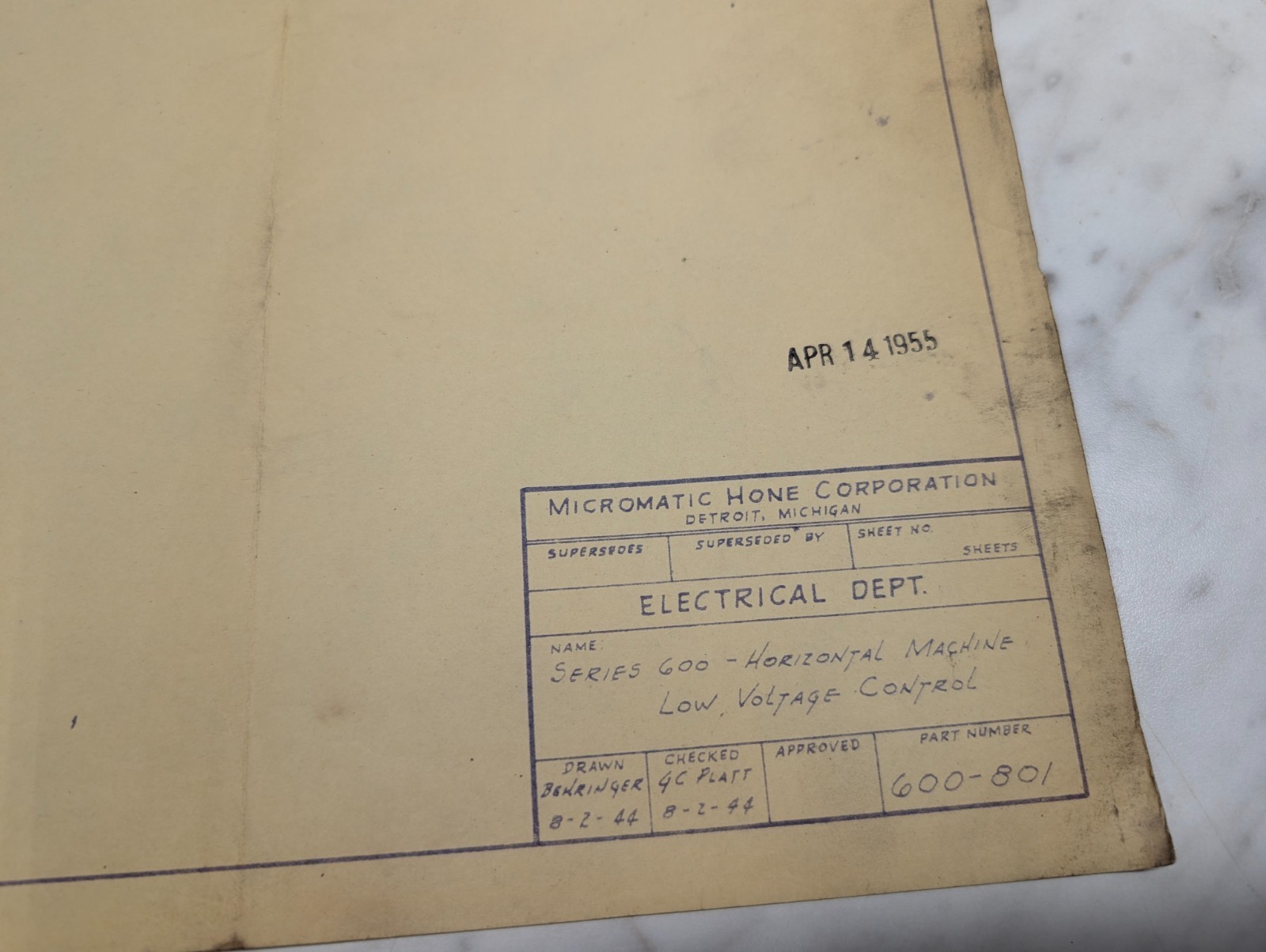 Micromatic Honing 600 Series Machine Tool Drawing Engineering Diagram Print