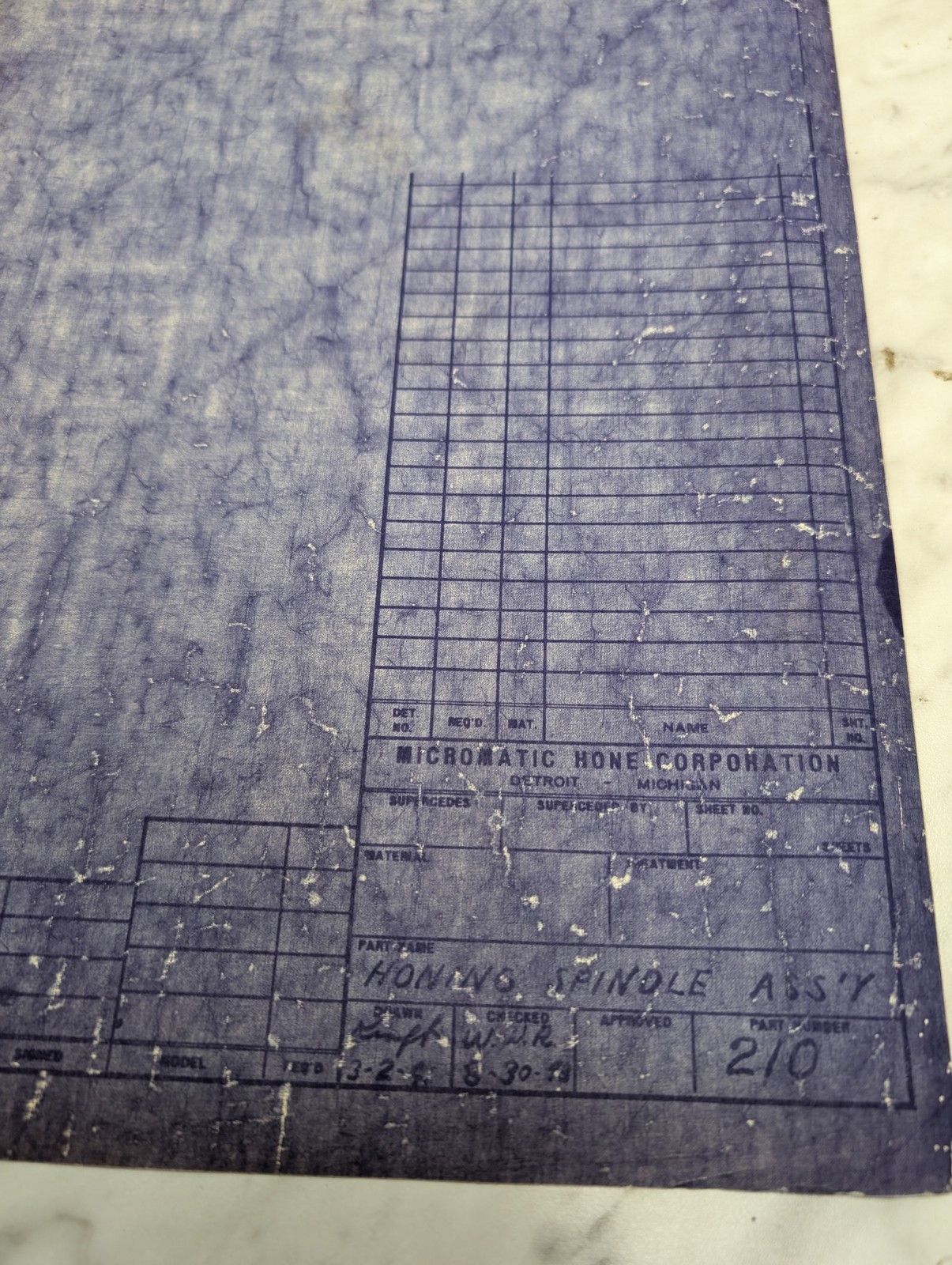 Micromatic Xlo Honing Spindle Assembly Drawing Print Diagram 2/0 Barnes Hone