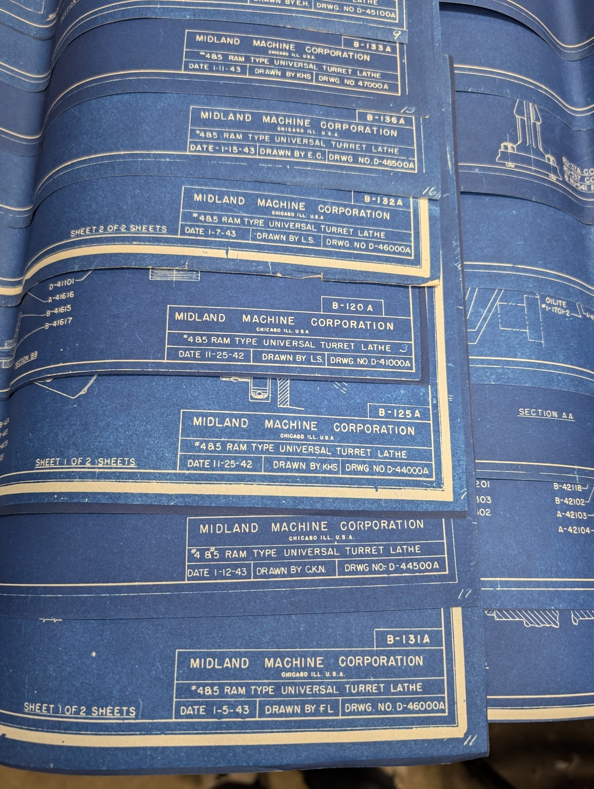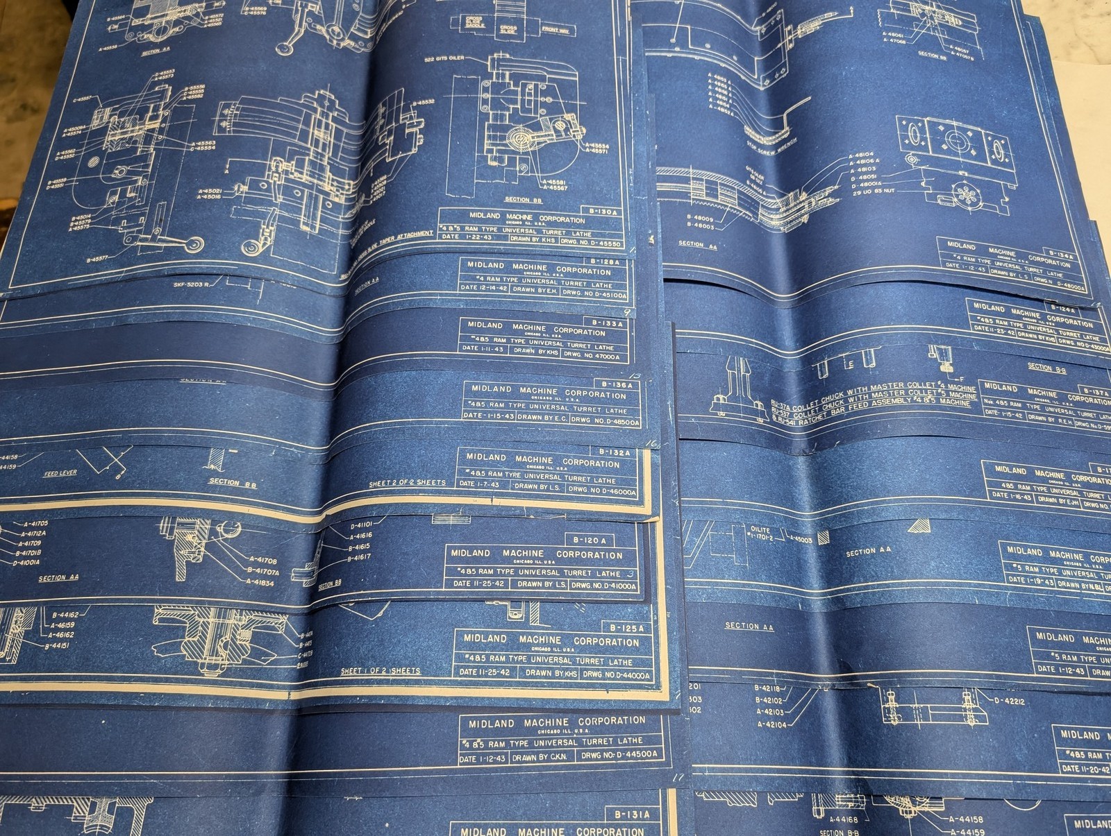 Midland Machine Tool #4 & 5 Turret Lathe Drawings Blue Prints Diagrams Lot