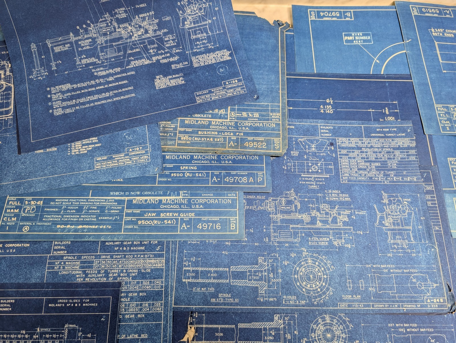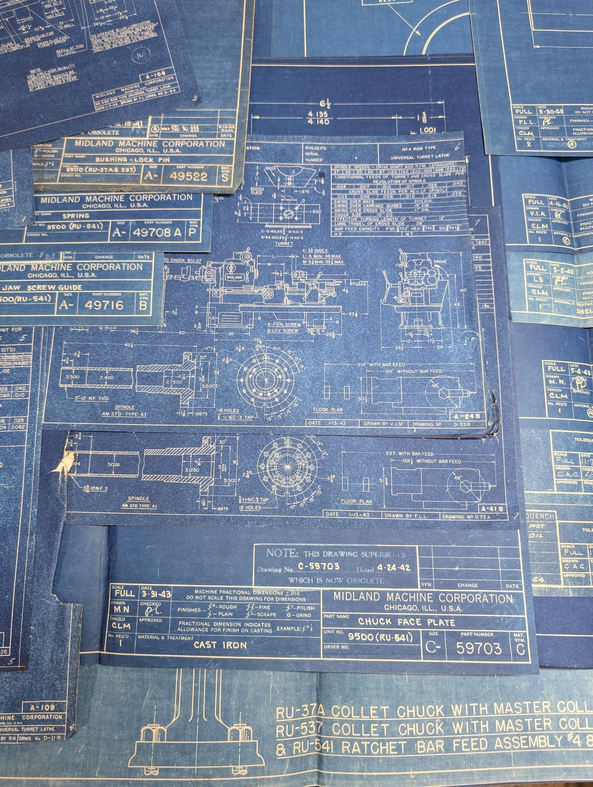 Midland Machine Tool Turret Lathe Prints Drawings Diagrams Information #4 #5