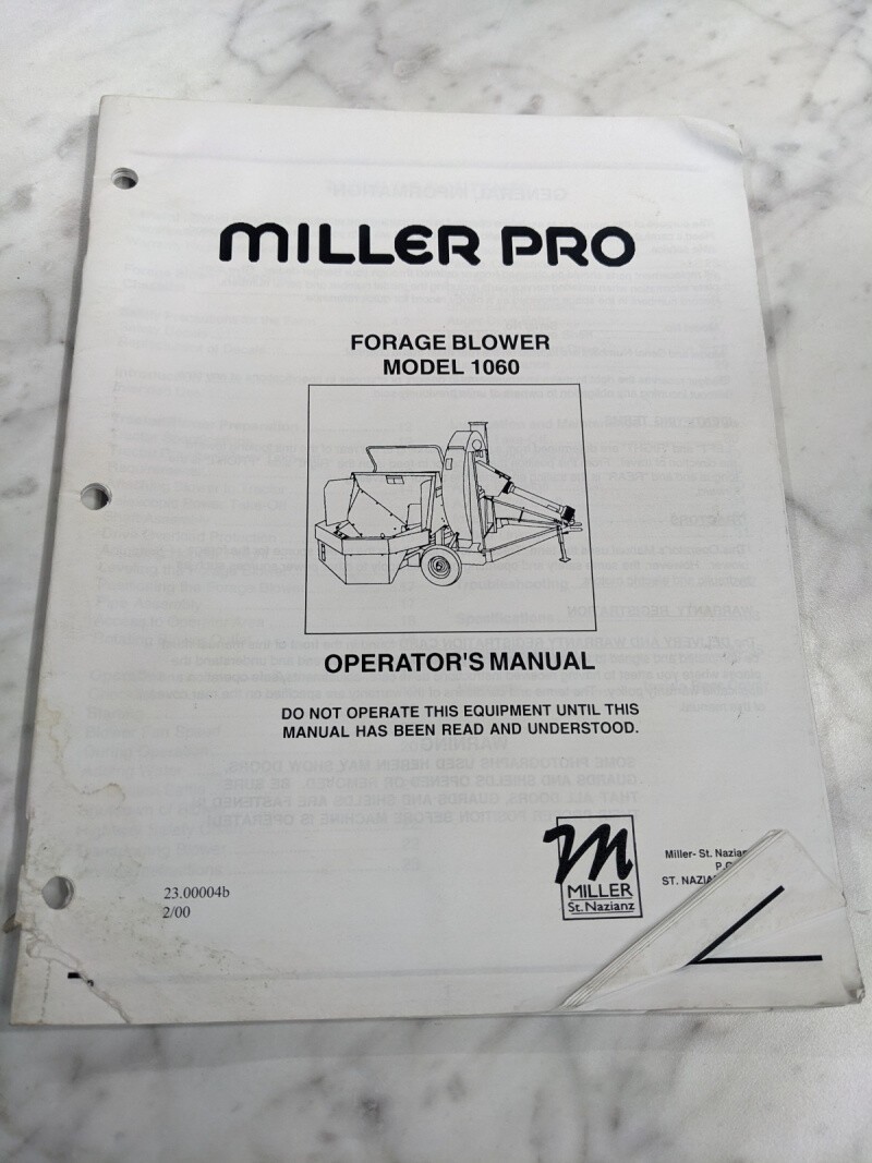 Miller Pro Forage Blower Model #1060 Operator Service Manual 2000