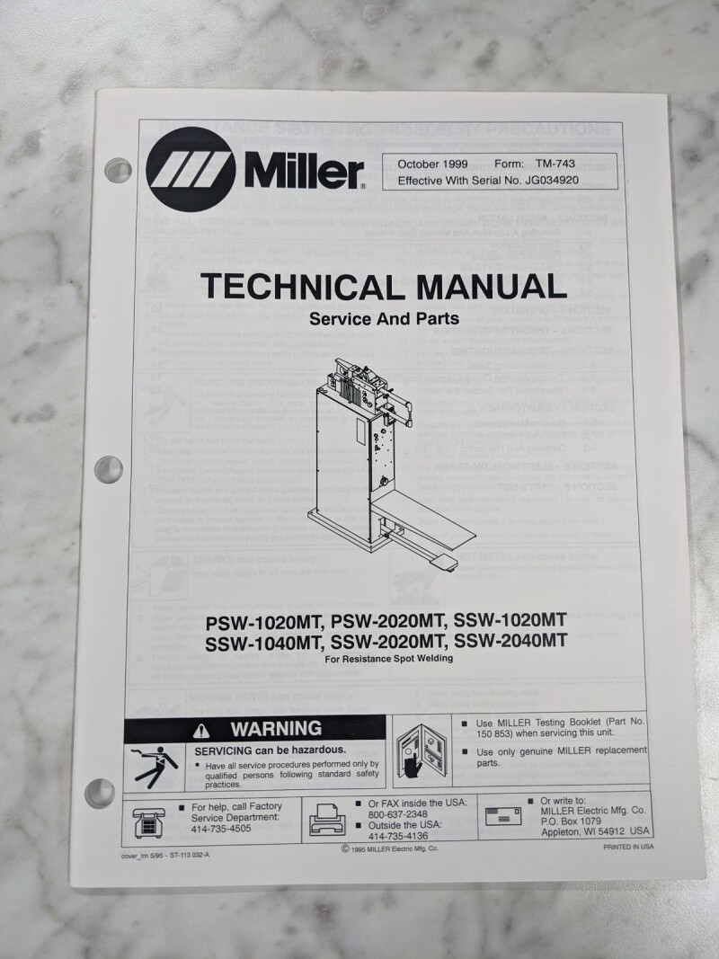 Miller Weder Service Technical Manual Part Psw-1020Mt 2020 Ssw 1040 2040 Tm-743