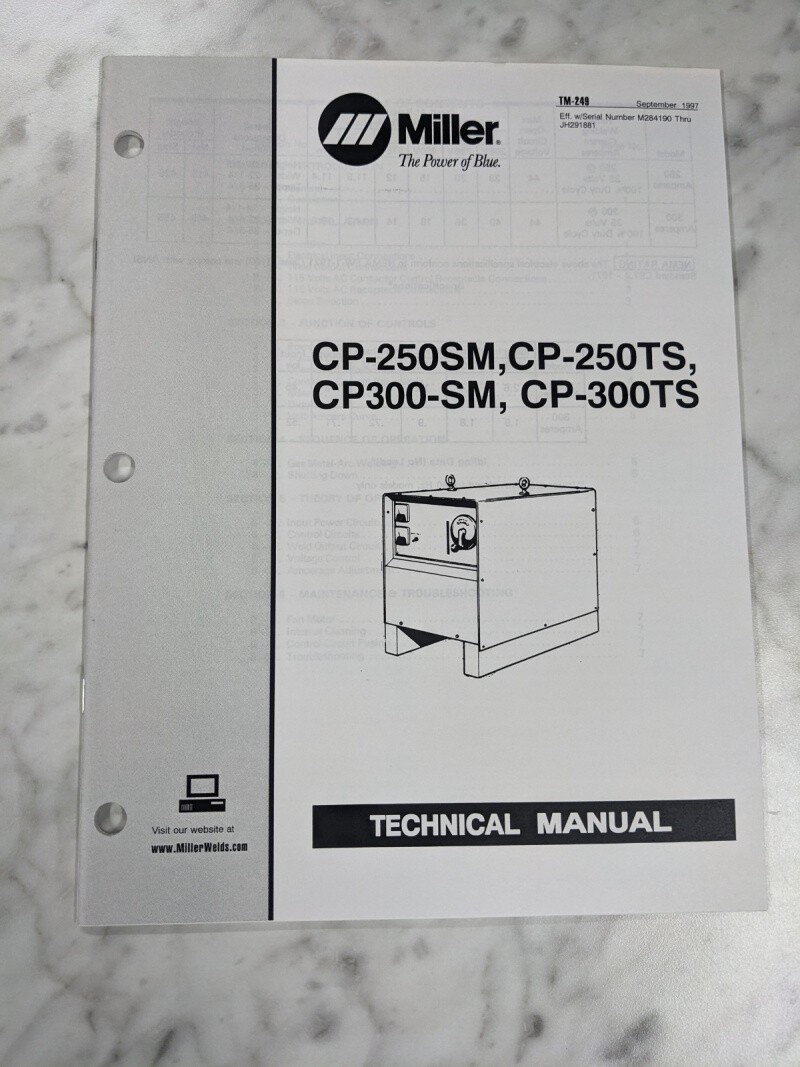 Miller Weder Service Technical Manual Parts List Cp-250Sm Ts 300 Tm-249 1997