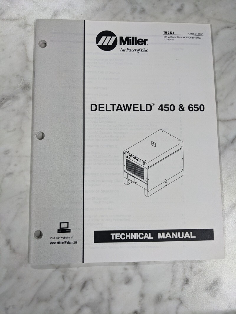 Miller Weder Service Technical Manual Parts List Deltaweld 450 650 Tm-232A 1997