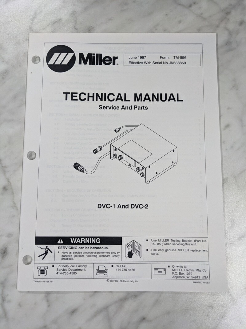 Miller Weder Service Technical Manual Parts List Dvc-1 Dvc-2 Tm-896 1997