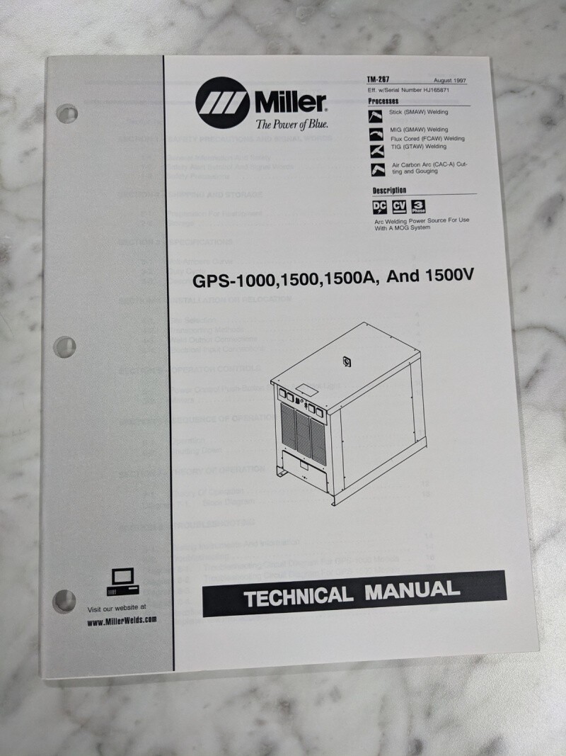 Miller Weder Service Technical Manual Parts List Gps-1000 1500A V Tm-267 1997