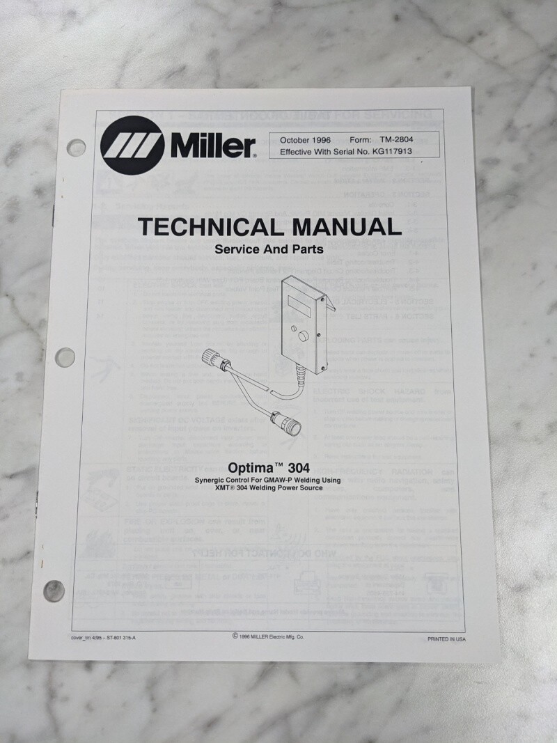 Miller Weder Service Technical Manual Parts List Optima 304 Tm-2804 1996