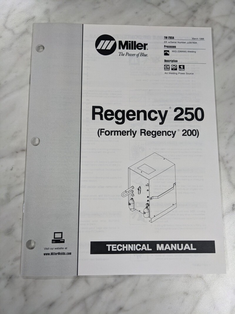 Miller Weder Service Technical Manual Parts List Regency 250 Tm-293A 1998
