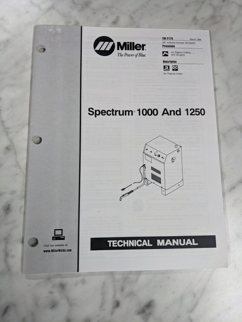 Miller Weder Service Technical Manual Parts List Spectrum 1000 1250 Tm-217A 1998