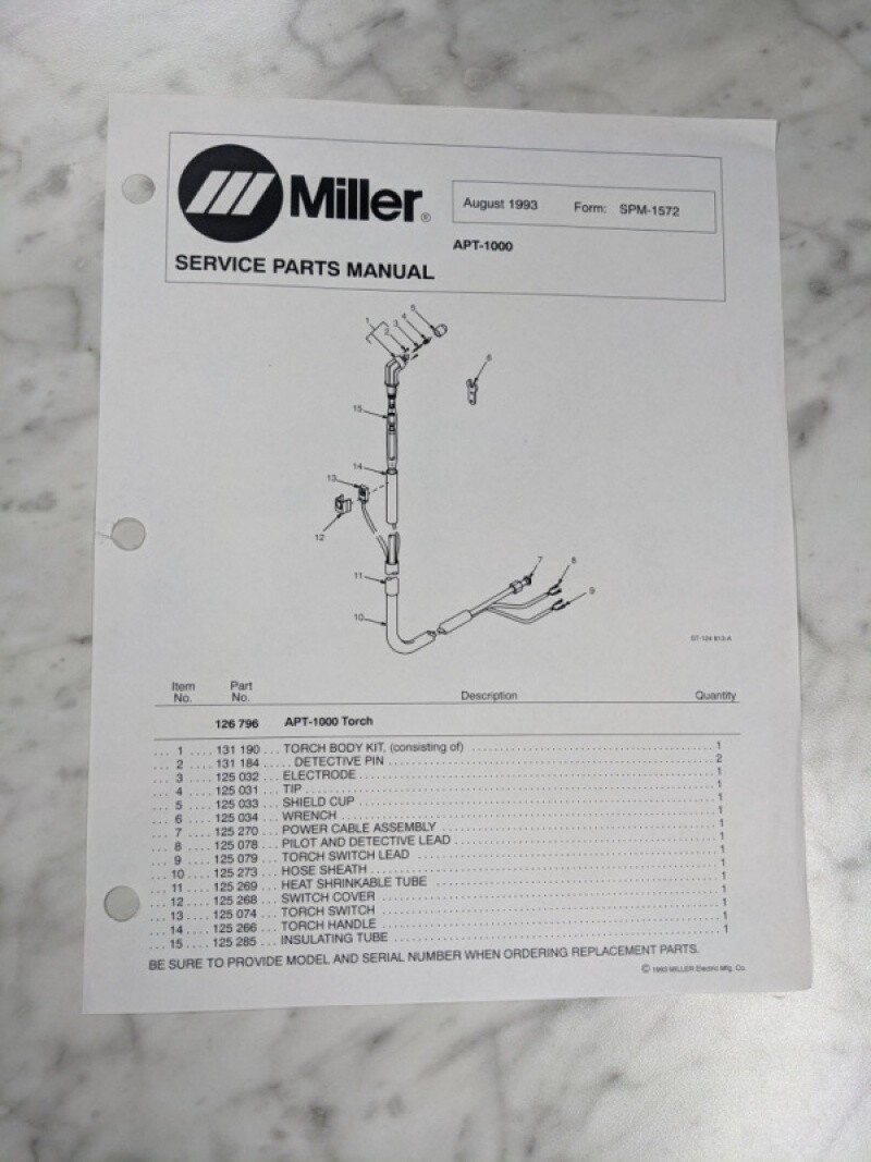 Miller Welder Service Parts List Manual Catalog Apt-1000 Spm-1572 1993
