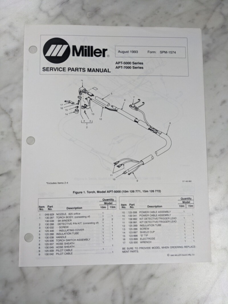 Miller Welder Service Parts List Manual Catalog Apt-5000 Apt-7000 Spm-1574 1993