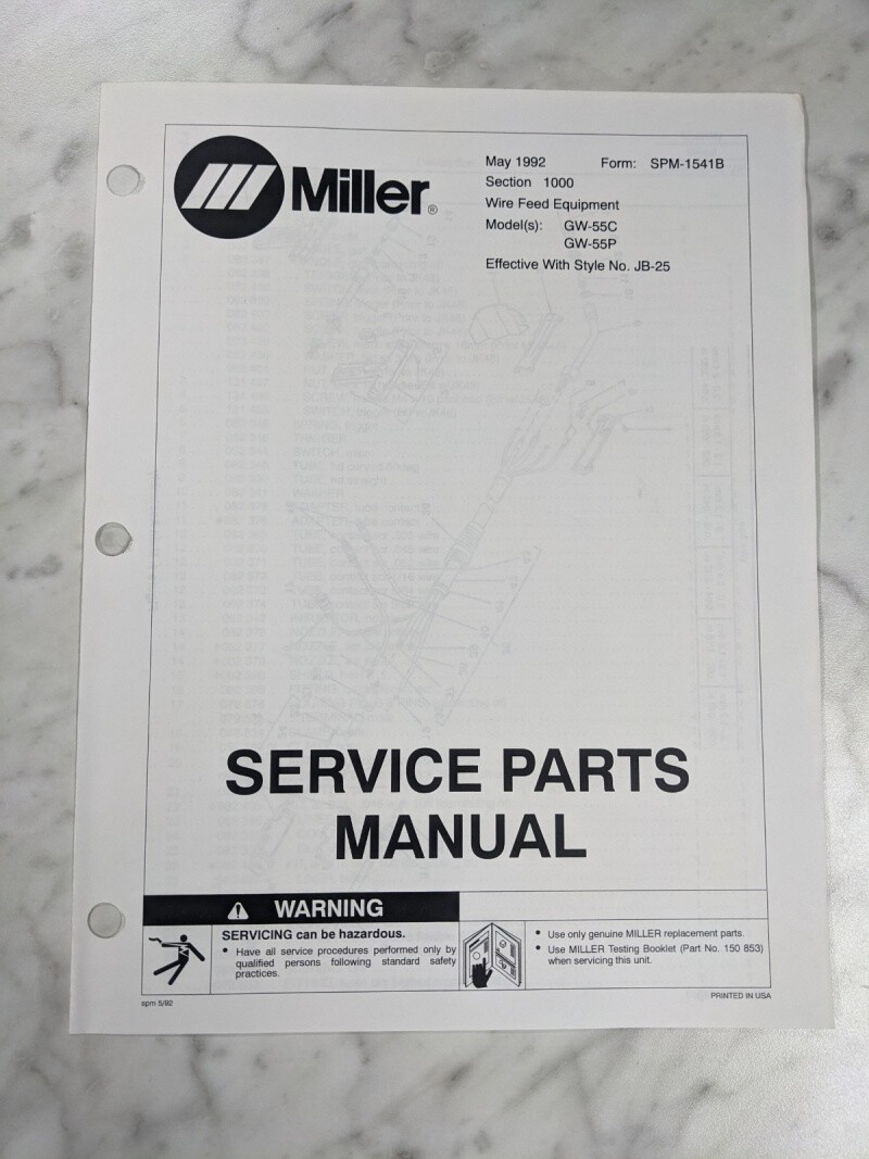 Miller Welder Service Parts List Manual Catalog Gw-55C P Spm-1541B 1992 Jb-25