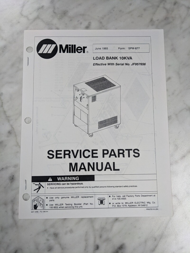 Miller Welder Service Parts List Manual Catalog Load Bank 10Kva Spm-877 1993