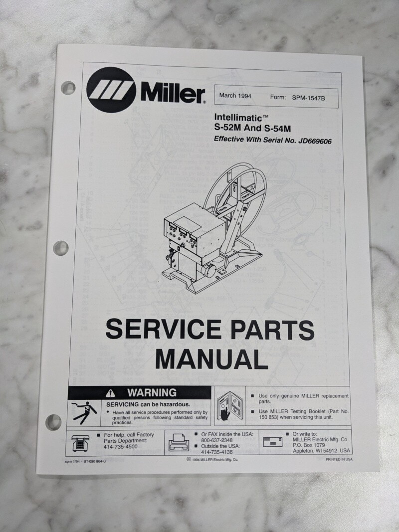 Miller Welder Service Parts Manual Catalog Intellimatic S-52M 54M Spm-1547B 1994