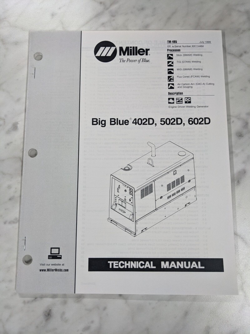 Miller Welder Service Technical Manual Parts List Big Blue 402D 502D 602D Tm-495