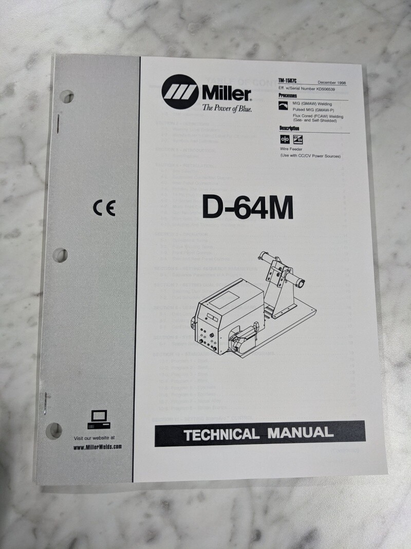 Miller Welder Service Technical Manual Parts List Book D-64M Tm-1587C 1998