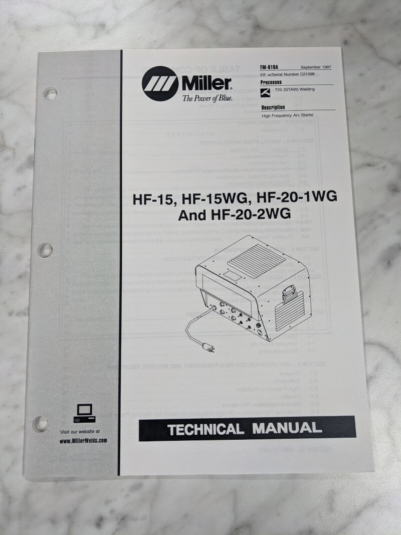 Miller Welder Service Technical Manual Parts List Hf-15 20 1 2Wg Tm-810A 1997