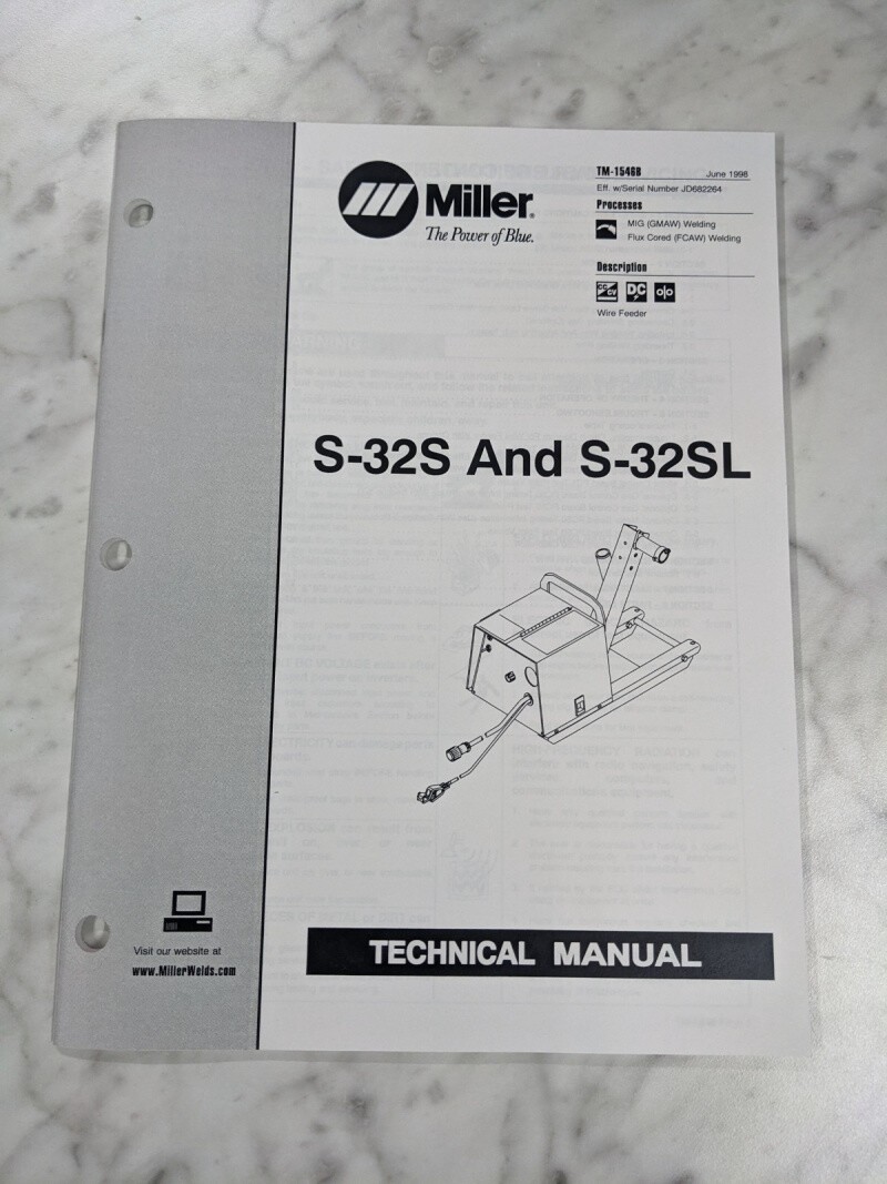 Miller Welder Service Technical Manual Parts List S-32Sl Tm-1546B 1998