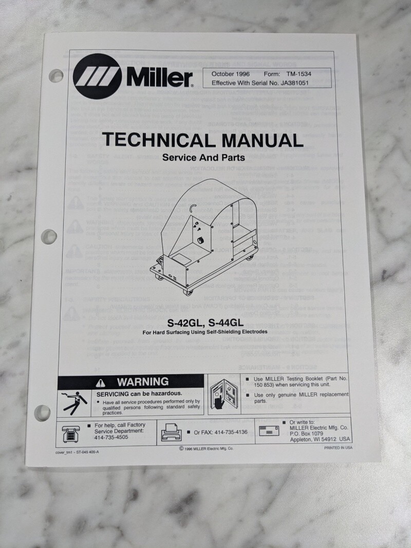 Miller Welder Techinical Manual Service Parts Book S-42Gl S-44Gl Tm-1534 1996