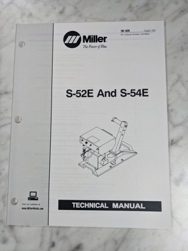Miller Welder Techinical Manual Service Parts Book S-52E S-54E Tm-1526 1997