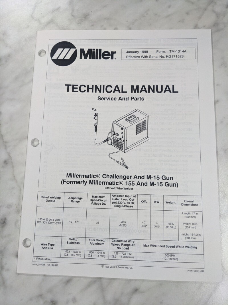Miller Welder Techinical Manual Service Parts Challenger Millermatic Tm-1314A