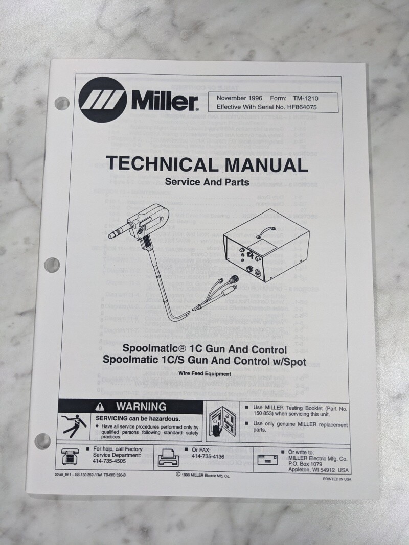 Miller Welder Techinical Manual Service Parts Spoolmatic 1C/S Gun Tm-1210 1996