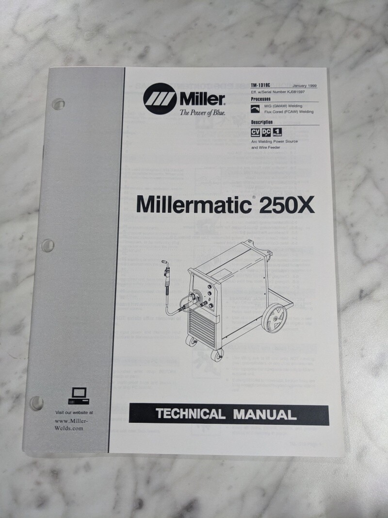 Miller Welder Techinical Service Manual Part List Millermatic 250X Tm-1319C 1999